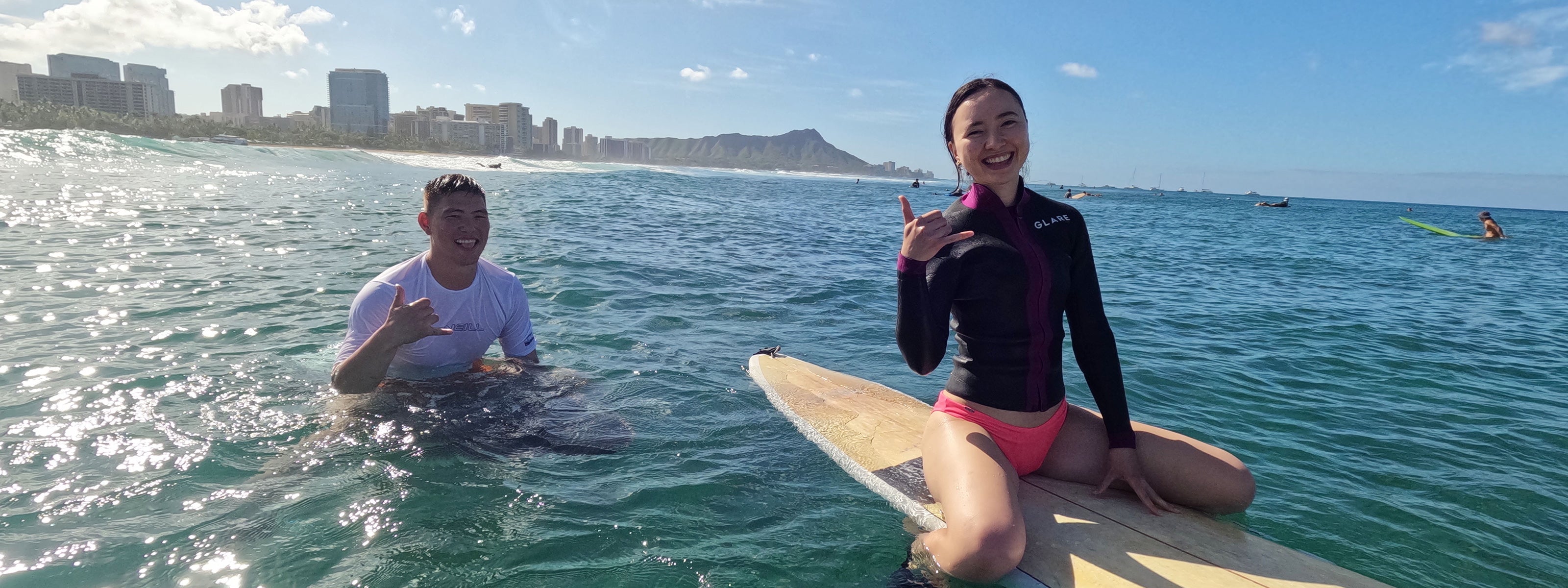 It is our mission and earnest desire to let as many people as possible ecperience the joy of surfing.Instructor has been surfing Hawaii for almost 30 years! A Japanese instructor with a surfing instructor license issued by the State of Hawaii and a lifeguard qualification certified by the American Red Cross will provide guidance under the highest safety.In order to give top priority to the safety of our customers and to experience surf lessons that are carefully cared for, we have a small number of students with a maximum of 2 students per instructor.We can accommodate a wide range of people, from children to families, couples, friends, and single women.We also offer customized plans according to your needs, so please feel free to contact us.